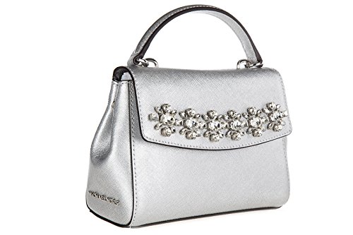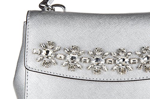 -. Title : Ava Jewel XS Extra Small Silver Saffiano Leather Crossbody