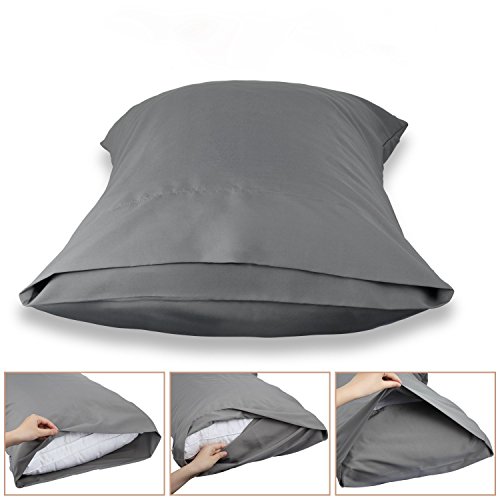 Twin Size Pillowcases Double Brushed Microfiber Pillow Covers Protectors Shams Set of 2 with Envelope Closure End, Wrinkle, Fade, and Stain Resistant (Twin, Dark Grey)