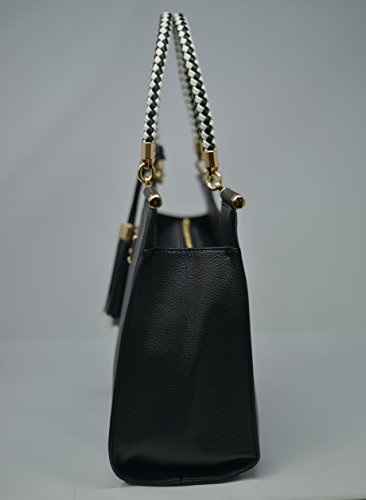 -. Brand : bebe -. Department : womens -. Feature : Large shoulder tote bag crafted from refined and durable faux leather with the generous interior for the personal organization of your tablet, wallet and spare flats. / Sturdy top zipper closure, 2 slip pocket and 1 zip pocket at the interior wall for the security of your items. / Adjustable and removable drop strap to use conveniently and easily carry around as a crossbody bag. / Carry as an everyday bag or only use it for special occasions to keep all your essentials for the day. Carry by the braided handles to use as a hands-free tote bag or pull it on over your shoulder. / Classic shopper style fashioned with braided handles and side tassel accents for a chic appearance. -. ProductGroup : Shoes -. ProductTypeName : HANDBAG -. Title : Bebe Women's Natalie Shopper Handbag Tote Shoulder Bag with Braided Handle