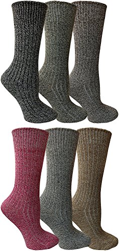 -. Feature : WOMENS MERINO WOOL SOCKS: A fine blend of warmth and fashion, these heavy ribbed twisted yarn merino wool socks comes in a variety of stunning colors in a single pack. Designed with style in mind, these socks are functional as they are stylish, featuring a warm heavy knit to brave all weather conditions. / HIKING / SKIING / CASUAL THERMAL SOCK: Perfect for a wide range of activities from casual day to day wear and winter sports including skiing, snowboarding, sledding, and taking on the great outdoors. Great for hiking, walking, running, trekking, cycling, and other athletic purposes.These lightweight socks have antimicrobial properties that fend off germs and odors. / MOISTURE WICKING / SOFT TOE SEAM: These merino wool socks provide a unique set of properties making it the ideal sock for most activities and almost any occasion. Features a natural moisture wicking ability to help draw moisture or sweat away from the skin, keeping them dry and comfortable. Each sock has a soft toe seam for comfort through hours of wear. / TWISTED YARN CONSTRUCT: The twisted yarn construction ensures structural integrity especially with frequent wear. The durable socks are perfect for various uses and looks chic with almost any outfit. These itch-free socks keeps your feet cozy and can be worn in all seasons. Keeps your feet cool in warmer weather with optimal breathability. / COMFORT FIBER BLEND: Sock size 9-11 will fit ladies shoe sizes 5-10. Made with 30% Merino Wool, 50% Cotton, 18% Polyester, 2% Spandex. Made with high quality fibers on modern machinery for a comfortable fit and durable construction. Includes pink, tan, heather gray, and dark gray. This bulk pack is a perfect treat for yourself or a gift for a loved one or friend.