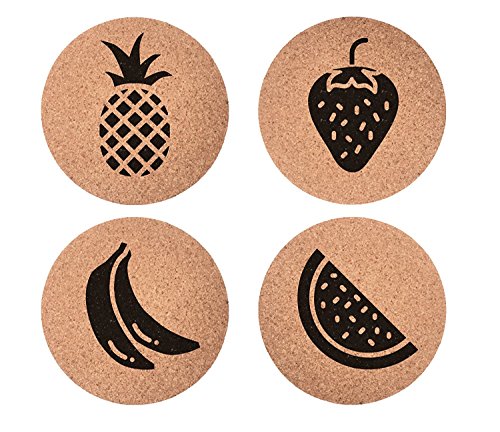 Trendy Fruit Set 4pc Coaster Set Cork Home Bedroom Bar Decor Gifts
