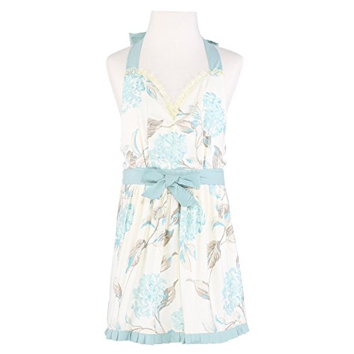 Neoviva Cotton Twill Garden Child Apron for Kid Girls, Style Laura, Floral Hydrangea Clear Aqua