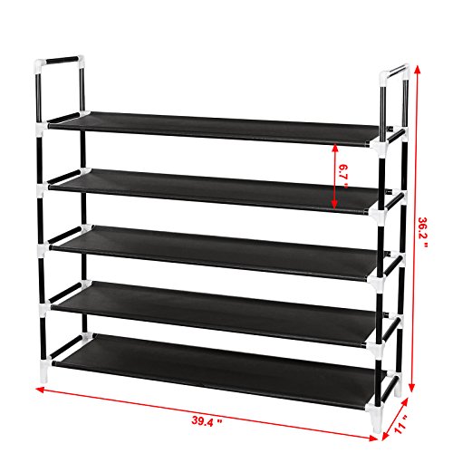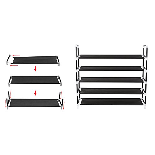 Features: - The 5 roomy, nonslip shelves can hold dress shoes, gym shoes, boots and more. - Number of layers can be modified depending on your needs - Extra procedure to the shelf fabric make the shelf waterproof, easy to wash. - You can remove a layer to fit tall boots, heels or larger purpose. - The shoe rack is lightweight and easy to assemble.