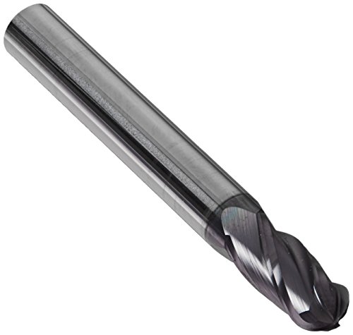Kodiak Cutting Tools KCT133681 USA Made Solid Carbide Ball Nose End Mill, Coated, 4 Flute, 1/4" Shank, 1/2" Length of Cut, 2" Overall Length, 1/4" Diameter