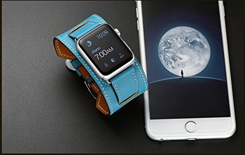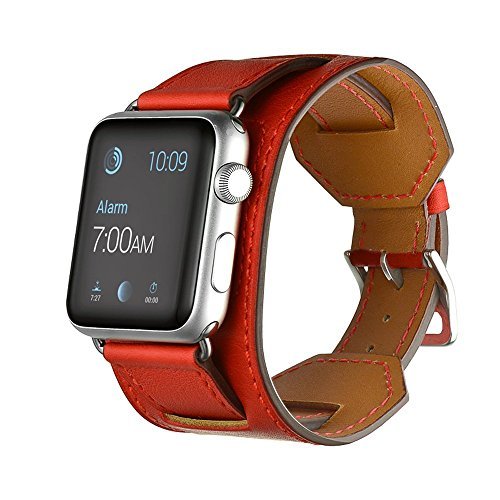 -. Feature : Third party replacement band, watch not included. High quality genuine leather guarantees a more comfortable fit with a durable and long-lasting service life / Apple watch Cuff band design.Inspired by equestrian fixtures, the finely worked modern Cuff leather is adapted to allow the heart rate sensor to stay in contact with the wrist. / Stylish cut and elegant looking; equipped with a solid, stainless steel buckle;well grindedand polished / Equipped with an apple watch metal adapter makes it much easier to replace the watch band; / An ideal Apple Watch Strap Replacement that fits for Apple watch, Apple Watch Sport and Apple Watch Editon