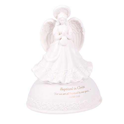 Baptized in Christ White Porcelain Musical Angel Figurine - Plays Tune Children's Prayer
