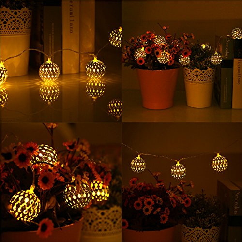 For example, a mirror in the bedroom or decor in the living area with warm white light string. Enjoy the warm white glow and the pretty pattern that the fairy lights exudes in the on-state. Your decorative and gift ideas are no limits with this LED Moroccan Orb Light chain.