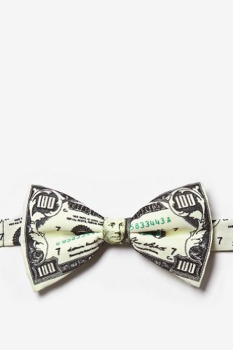 -. Binding : Apparel -. Brand : Wild Ties -. ClothingSize : one size -. Color : Ivory -. Department : mens -. Feature : Features a bold statement of currency / Signifies growth and prosperity / Resistant to wrinkles / Durable polyester construction / Tie measures 2.75 by 4.75 inches -. Model : WT999027 -. MPN : STU997 -. PackageQuantity : 1 -. PartNumber : STU997 -. ProductGroup : Apparel -. ProductTypeName : ACCESSORY -. Size : One Size -. Title : Ivory Poly Bow Tie | $100 Dollar Bill Pretied Bow Tie