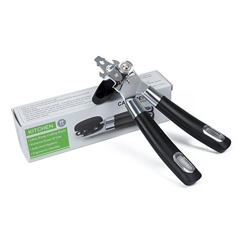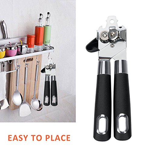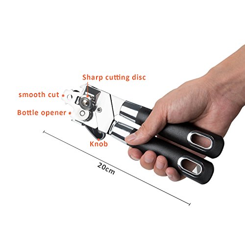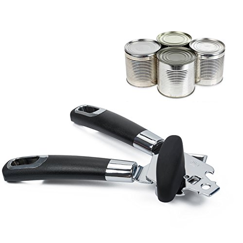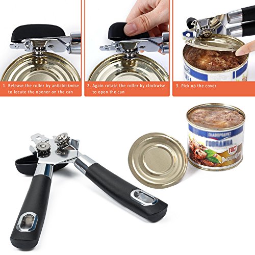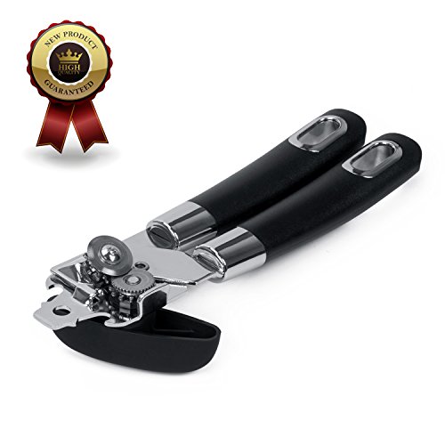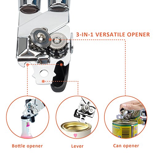 3 in 1 Can Openers, Elebor Tin Opener with Lids off Jar Opener and Bottle Opener, Manual Anti Slip Versatile Opener, Ergonomic & Sturdy Design with Smooth Edge with Stainless Sharp Blade (black)