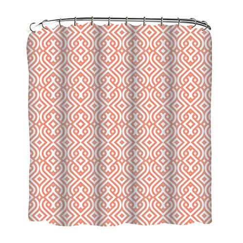 Indecor Home FSCRH-Braid-C Fabric Geo Braid Shower Curtain and Roller Hook Set