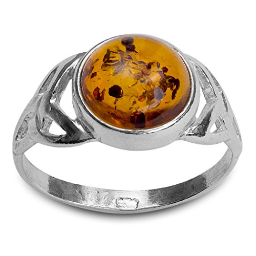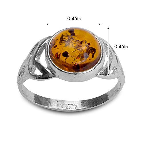 -. Title : Sterling Silver Amber Celtic Knot Round Ring