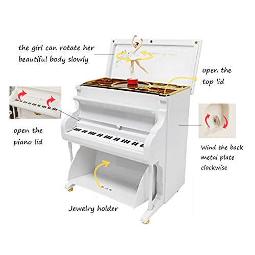 Ccassie Classical Mechanical Piano Shape Music Box With the Ballerina dancing Home Decoration Christmas Birthday Gift(Upright piano)