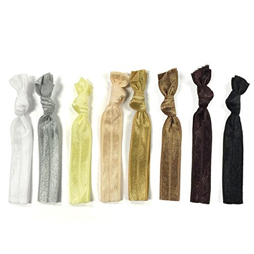Firmly secure your hair back with these soft and stretchy hair ties. Each hair tie is knotted at the end and metal free. This allows your ponytail to be held tightly in place without damaging or tugging your hair, preventing ponytail dents and creases. Available in a number of colors and patterns to match any hair color, outfit, and occasion.Feature