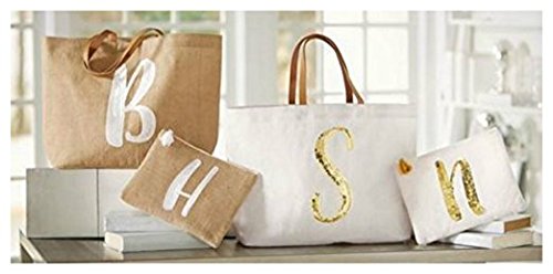 Mud Pie Initial Sequin Tote- D (White Sequins)