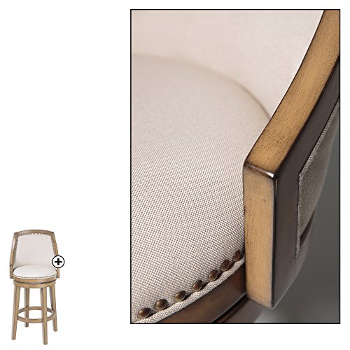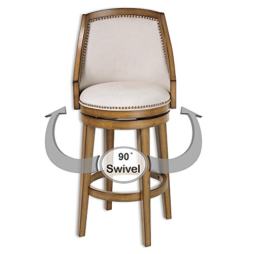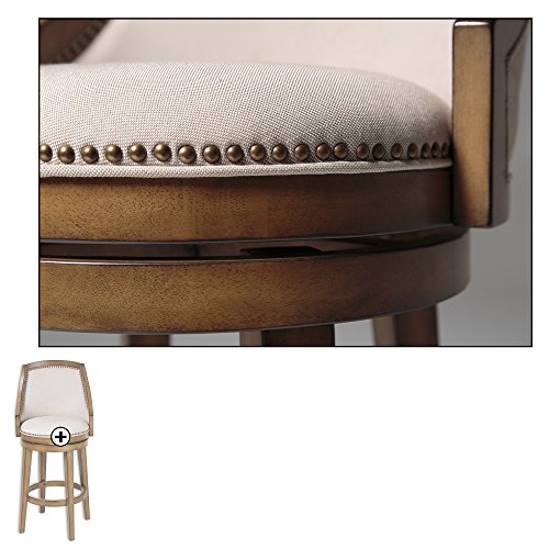 -. Brand : Fashion Bed Group -. Feature : Seat height: 30 in.; Dimensions: 23W x 21D x 45.63H in. / Seat width: 23 in. / Wood frame with seat upholstered in putty fabric / Acorn finish / Barrel-shaped backrest -. Label : Fashion Bed Group -. Manufacturer : Fashion Bed Group -. MPN : C1X100 -. PackageQuantity : 1 -. PartNumber : C1X100 -. ProductGroup : Furniture -. ProductTypeName : HOME_FURNITURE_AND_DECOR -. Publisher : Fashion Bed Group -. Studio : Fashion Bed Group -. Title : Fashion Bed Group Charleston 30 in. Swivel Bar Stool - Acorn