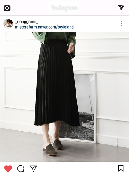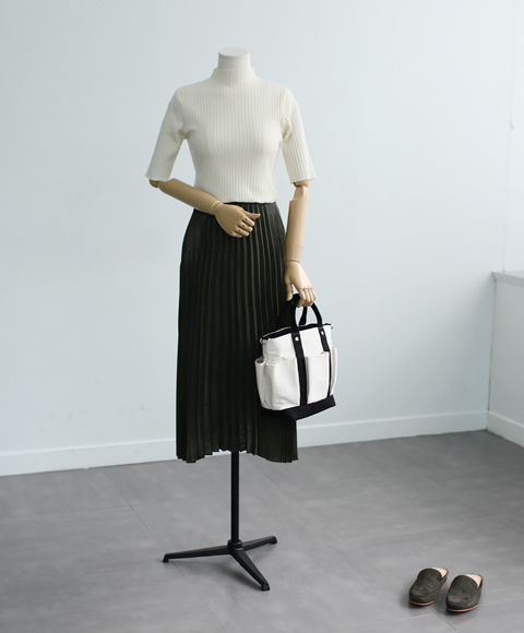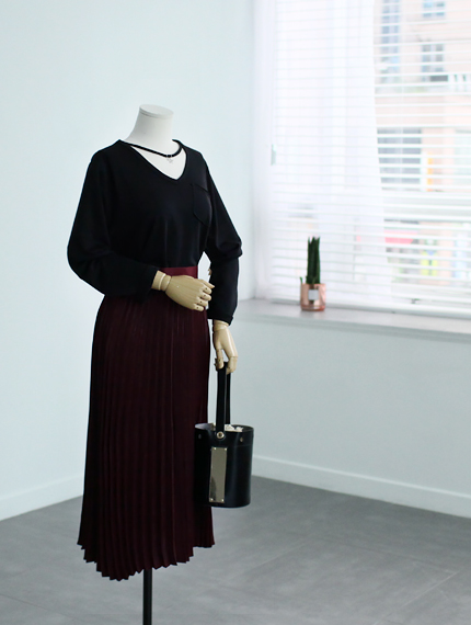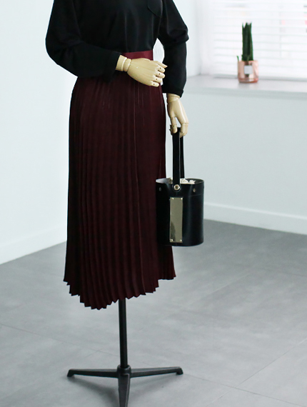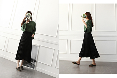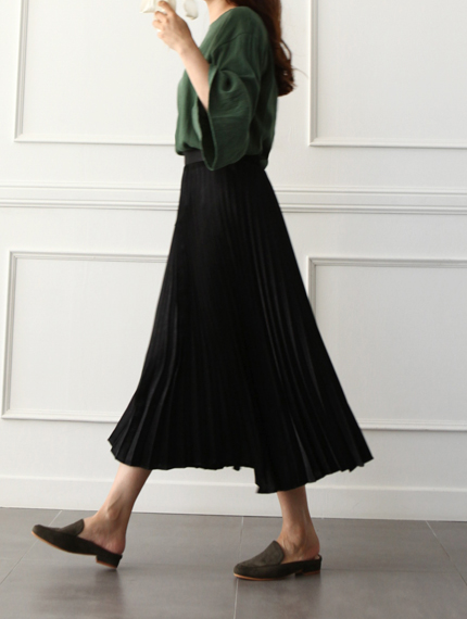 Pleat Shatin Long Skirt 55 ~ 77 Women's 40s vintage retro print out size