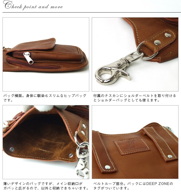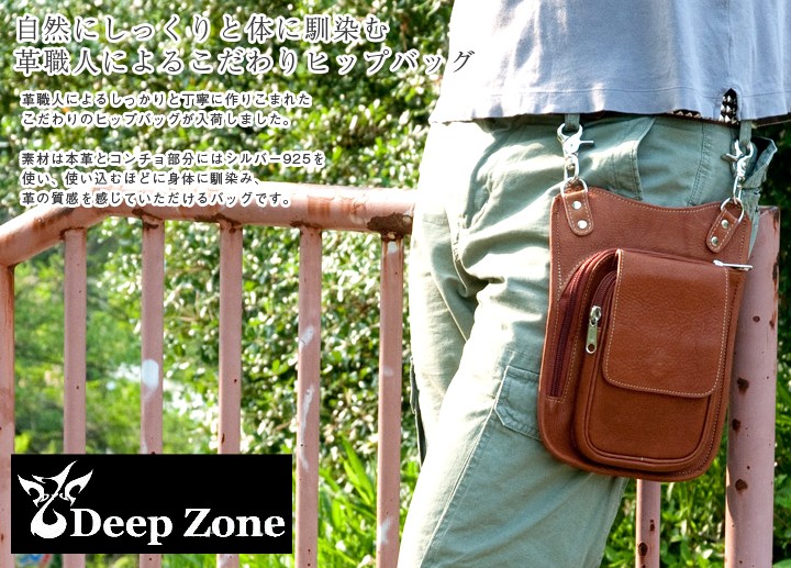 関西発のレザー&シルバーブランド「DEEP ZONE」より新作レザーヒップバッグが入荷。上質なカウスキン(牛革)を使用し、革職人の手によって丹念にオールハンドメイドで作られるバッグは、使うほどにしっくりと身体に馴染んできます。携帯電話、タバコ、小物など数箇所に分けて収納できる実用性の高さも魅力。コーデを問わずに気軽に持てる万能アイテムです。