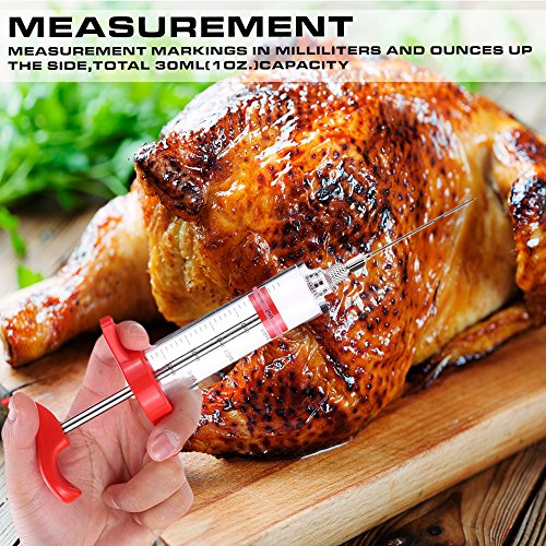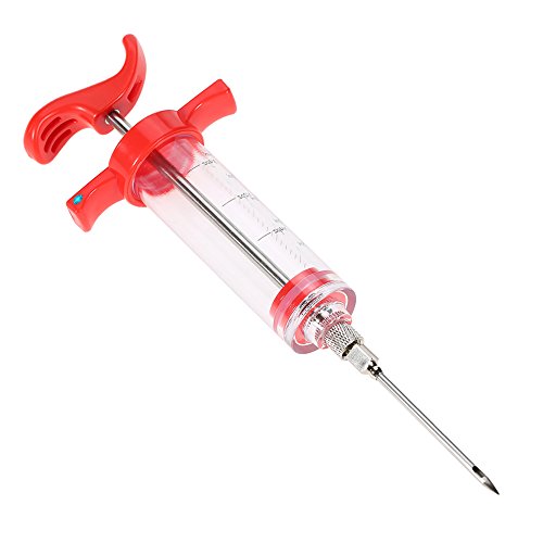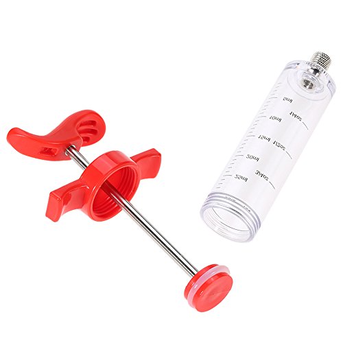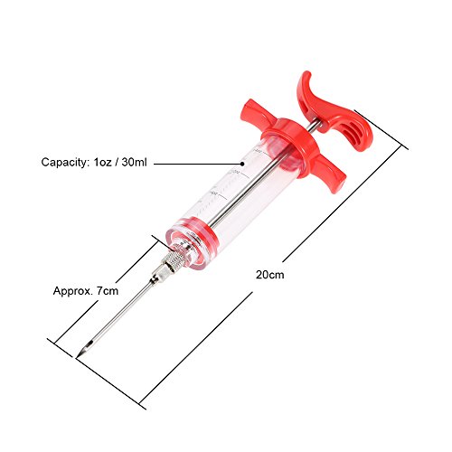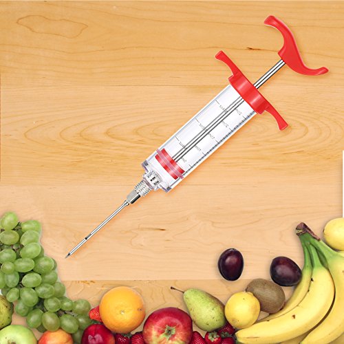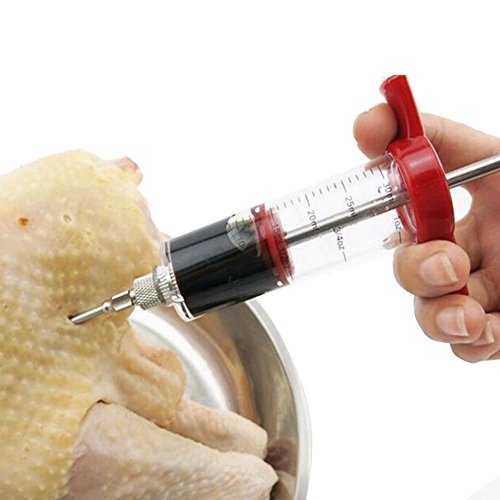 The sauce can be inhaled inside the syringe and then injected into the meat making the meat tastier. Ideal to moisten and marinate meat by injecting cleanly, deeply and quickly into the meat or poultry. It is great for roasting, barbecuing and even deep frying your meat and poultry. This highly versatile injector is perfect for injecting marinades and meat juices back into the meat, keeping it moist and succulent.