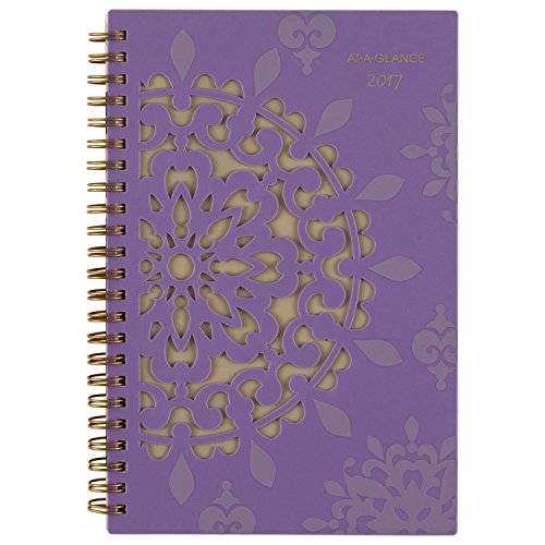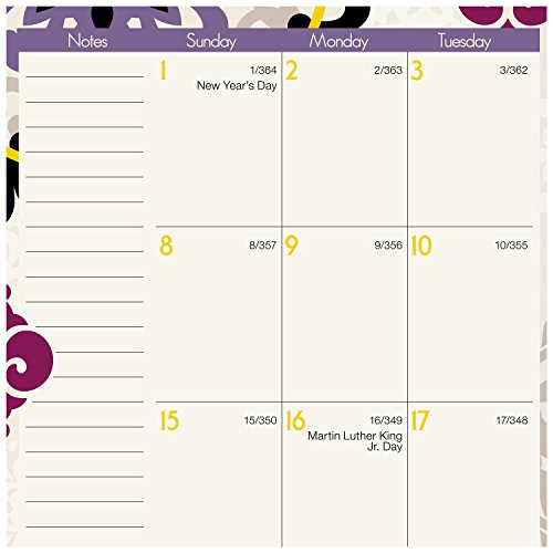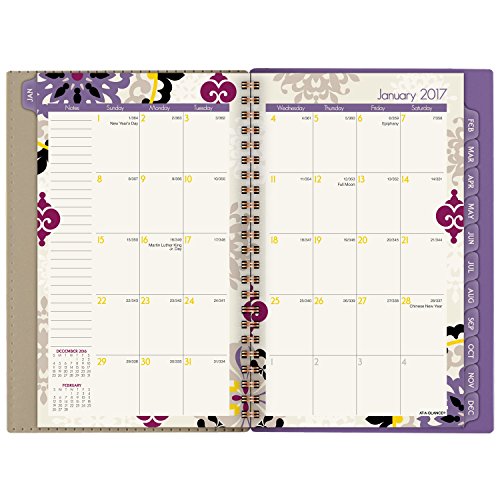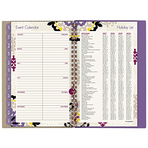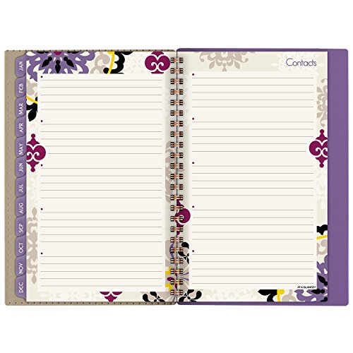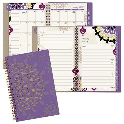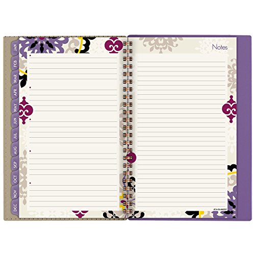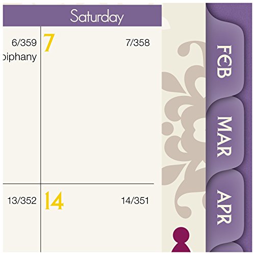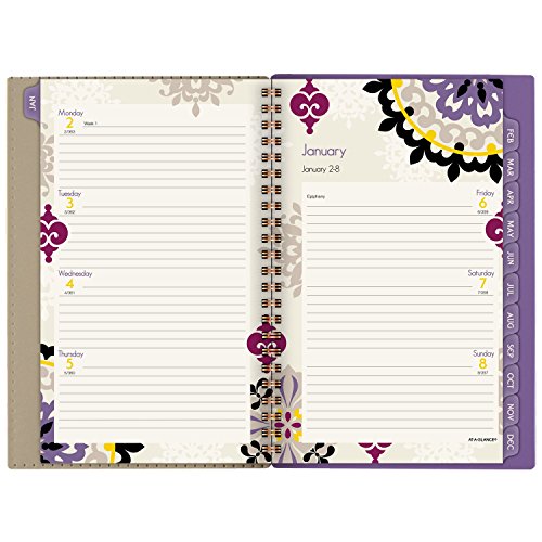 -. Feature : Vienna Desk Weekly / Monthly Planners help you balance school and home life all year long and cover 12 months, from January through December. Inspired by classic medallion design. / One week per two page spread features large ruled daily blocks for open planning and notes with equal space for weekdays and weekends for scheduling both work and home / One month per two page spreads include ruled daily blocks with Julian dates and ruled notes space along left margin. Past and future months reference calendar in bottom left margin. Months are tabbed to make it easy to quickly turn to any date. / Special pages include 3 year reference calendar holiday list, event calendar, contacts and notes pages to keep all of your important information in one convenient location / P.R.Inted on quality paper that contains 30% post-consumer material; vegetable based inks. Quality wirebound binding with a compact page size of 4.88 in. x 8 in. is big enough to offer plenty of planning space yet compact for adaptable planning. Purple.