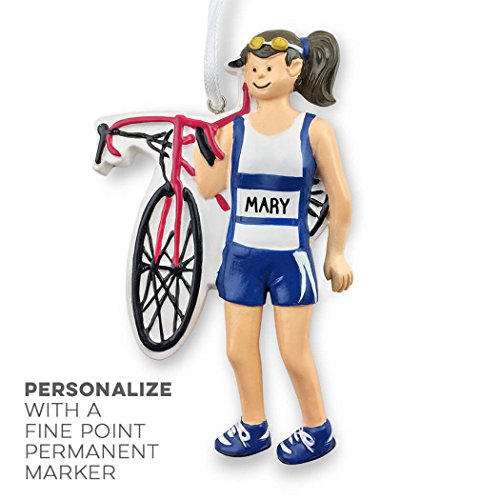 - EASY TO PERSONALIZE! Want to add a special touch to this already awesome brunette triathlon girl ornament? Grab a fine point permanent maker and get ready to customize! This figure's tri suit is designed for you to add a name, number, and any other fun details you'd like to include. You can even customize one for every member of your tri team!