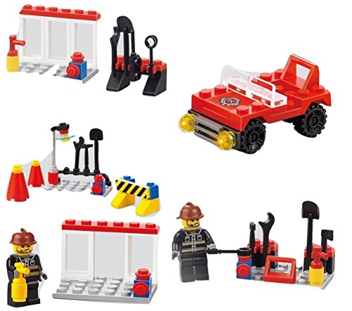 -. Title : Fire Emergency Series 5-In-1 Building Bricks 99pc Toy set Fire Fighter - Road Block - Fire Equipment - Mini Fire Car - Brave Fire Fighters Compatible to L.E.G.O Parts