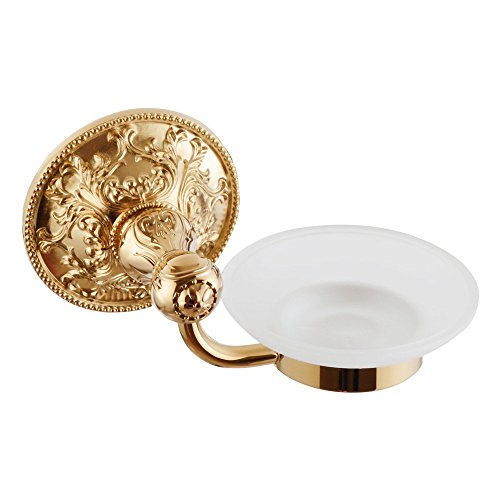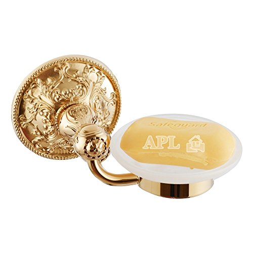 -. Title : APL-6308 Exquisite Carved Bathroom Accessories, Solid Brass Base Soap Dish with Glass, Titanium Gold