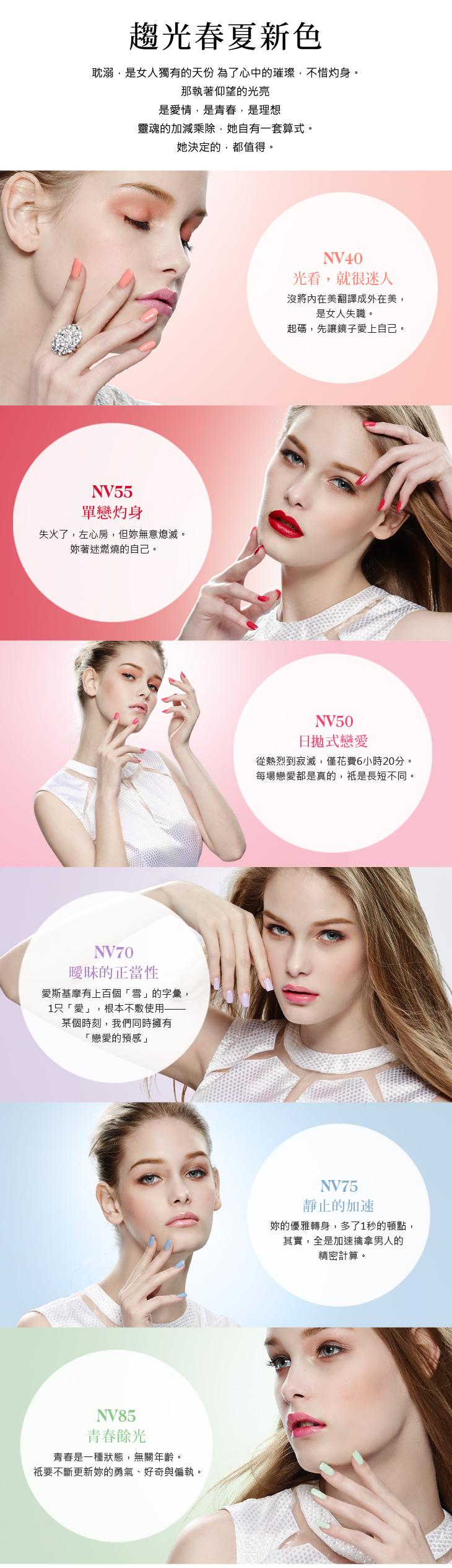 能讓平凡的自然光下,極致放大美麗指彩效果,激活硬化指彩。