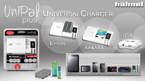 Hahnel UniPal Plus Universal-Ladegerat mit USB (5V, 1000mAh) fur Li-Ionen und AA/AAA Akku