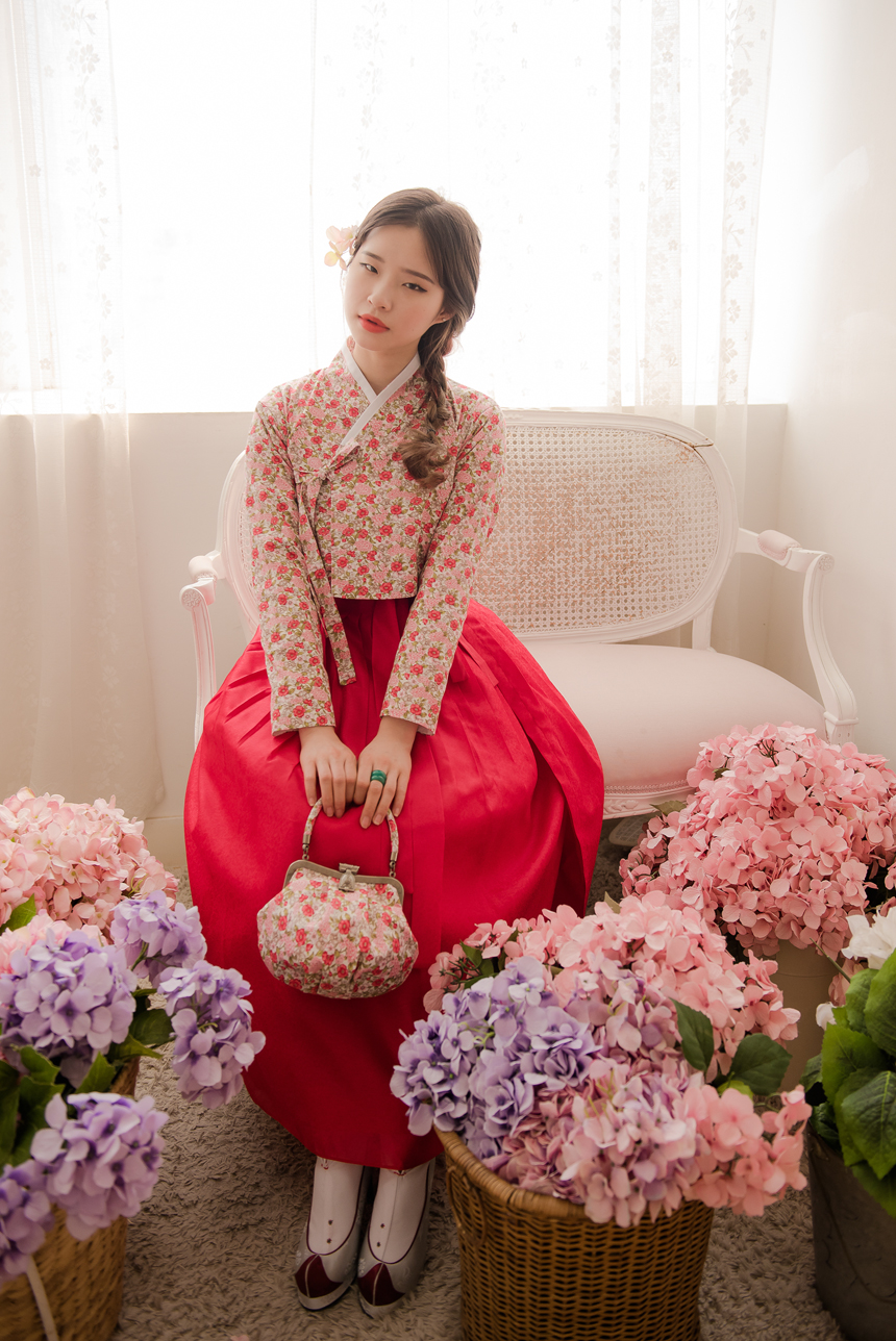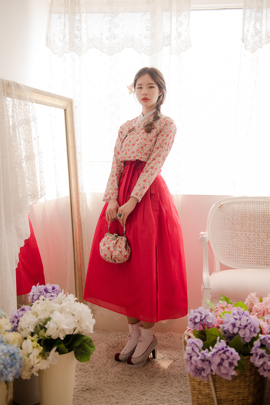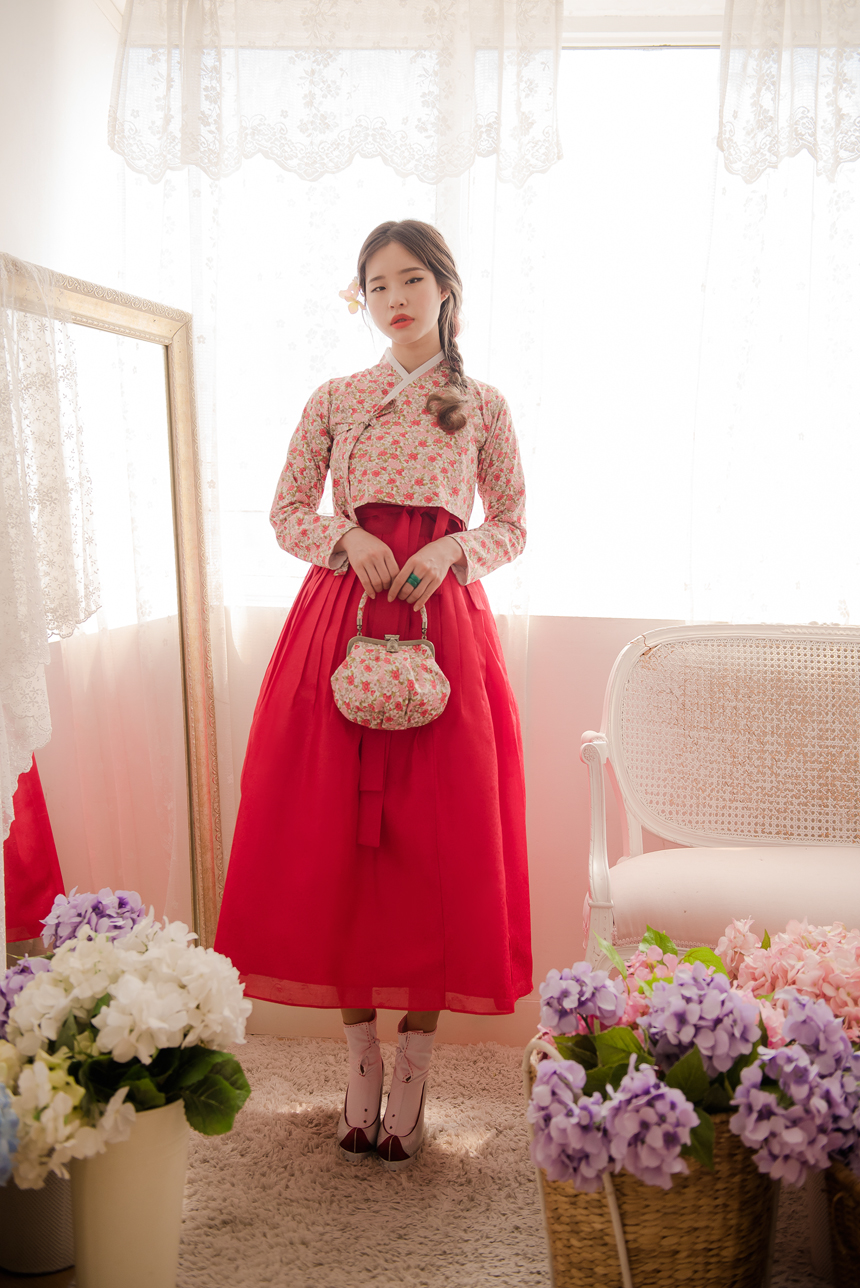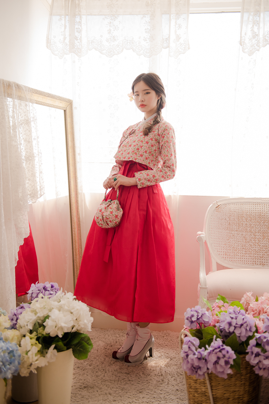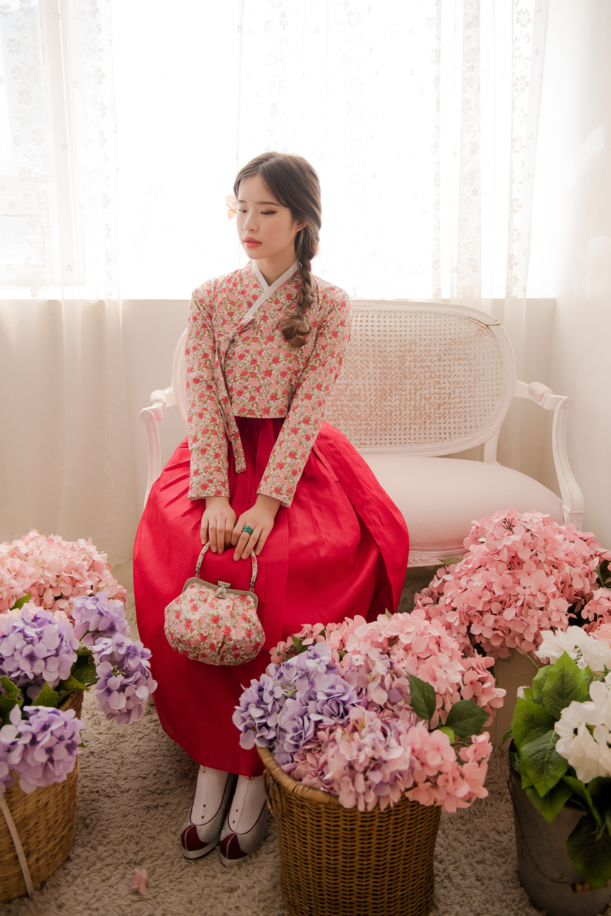 꽃닮 허리치마 수국단 홍색