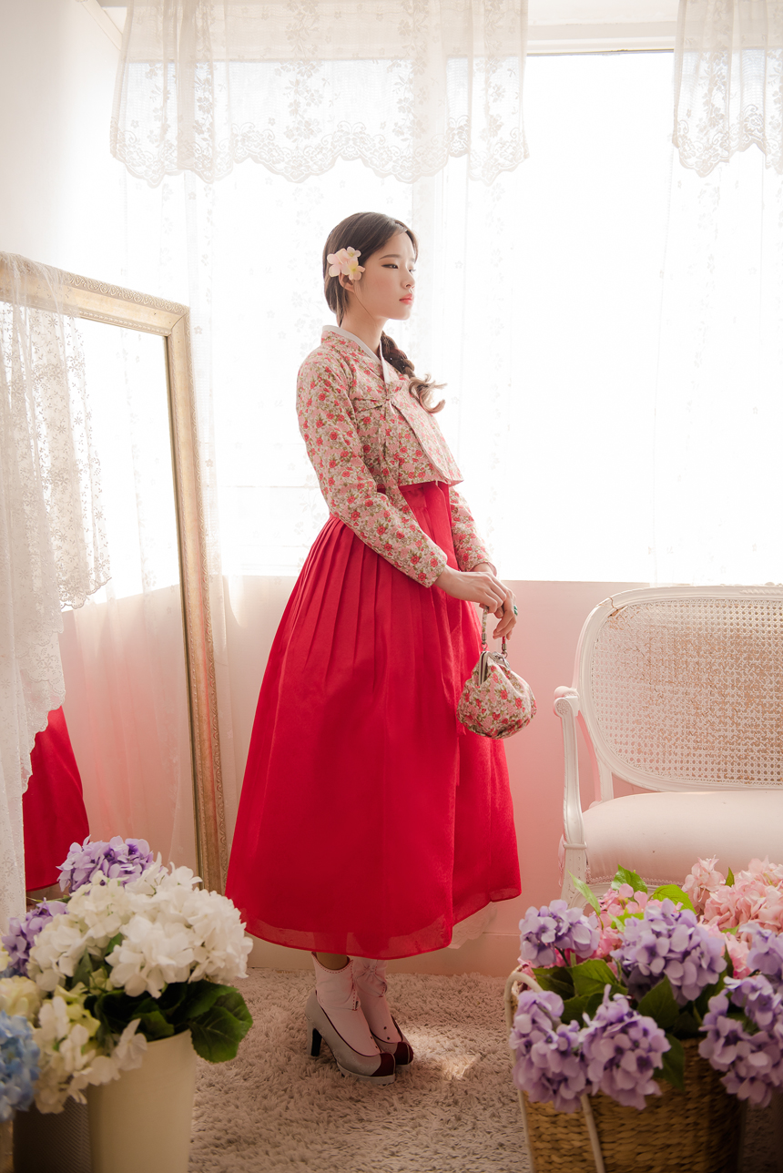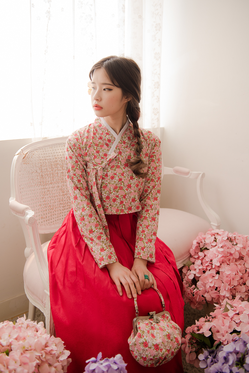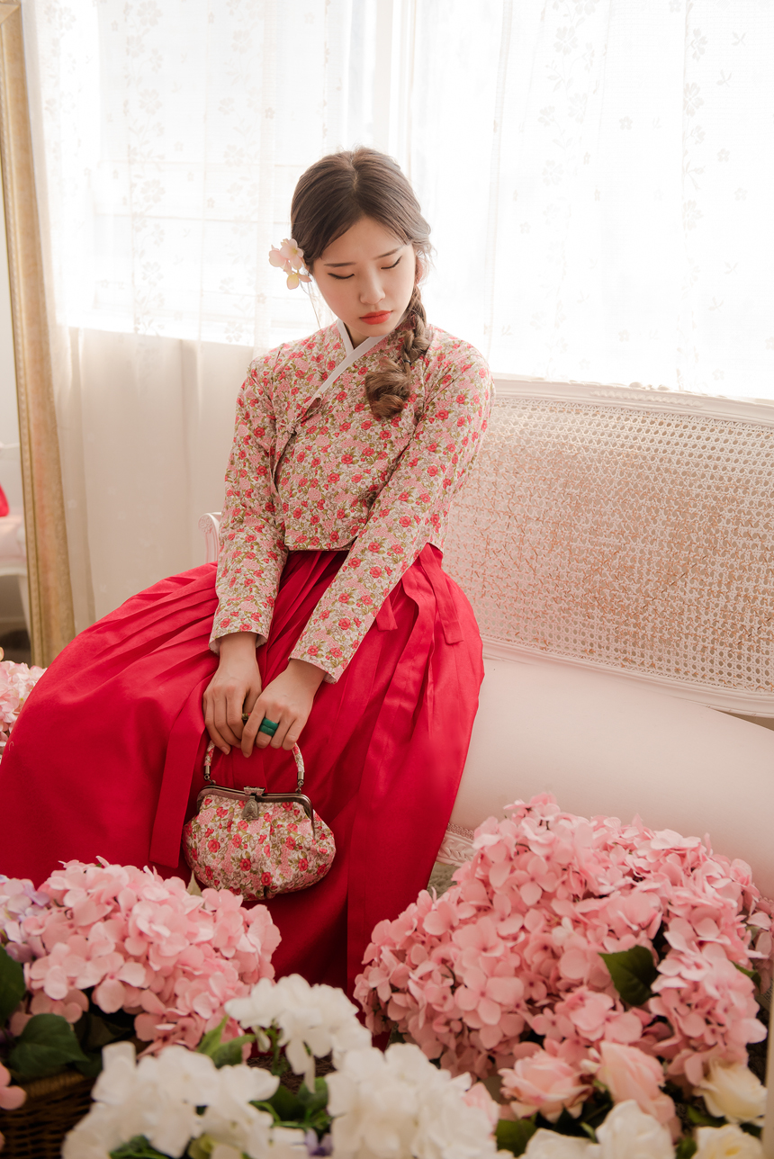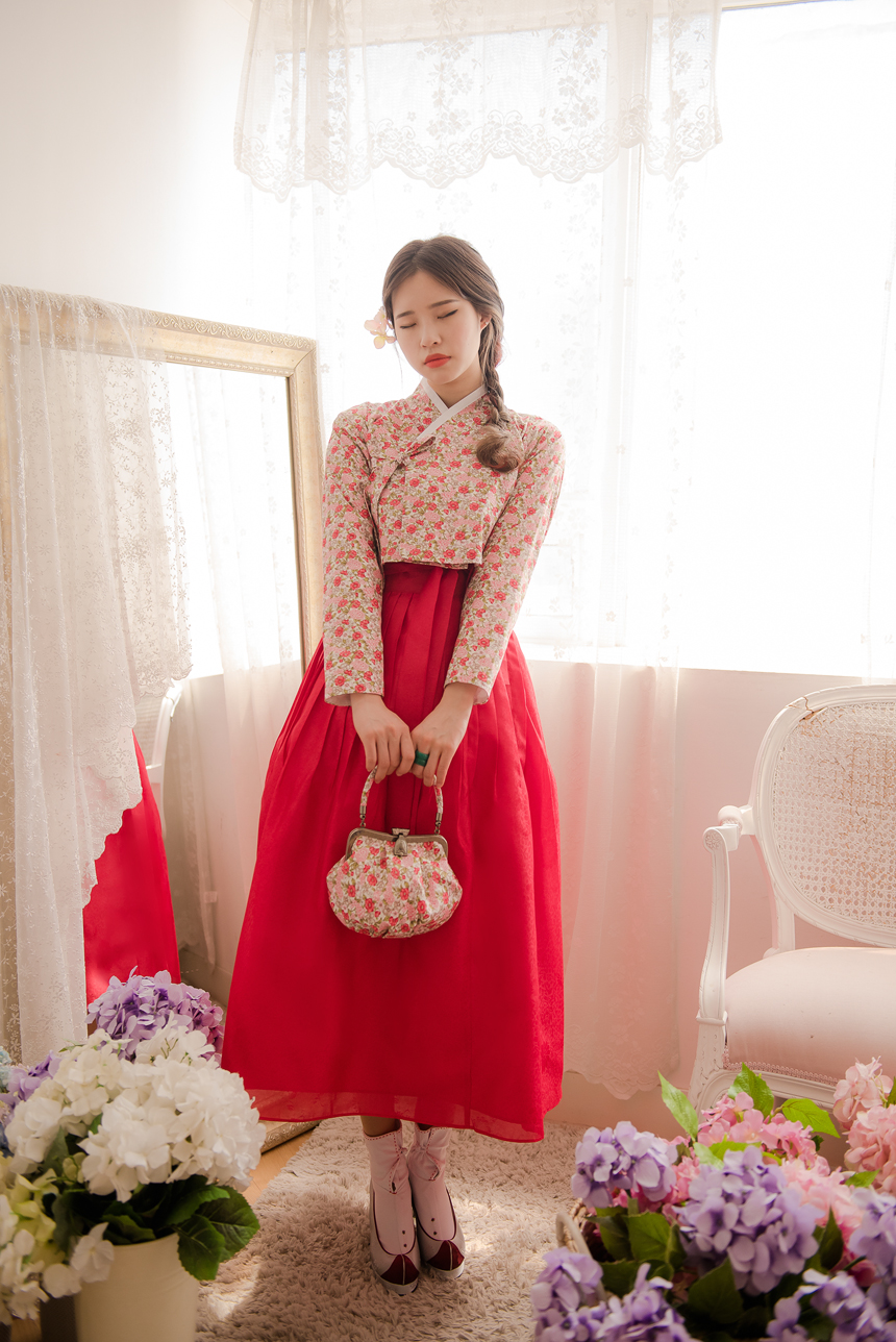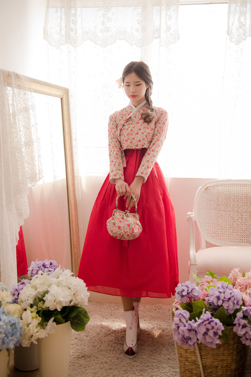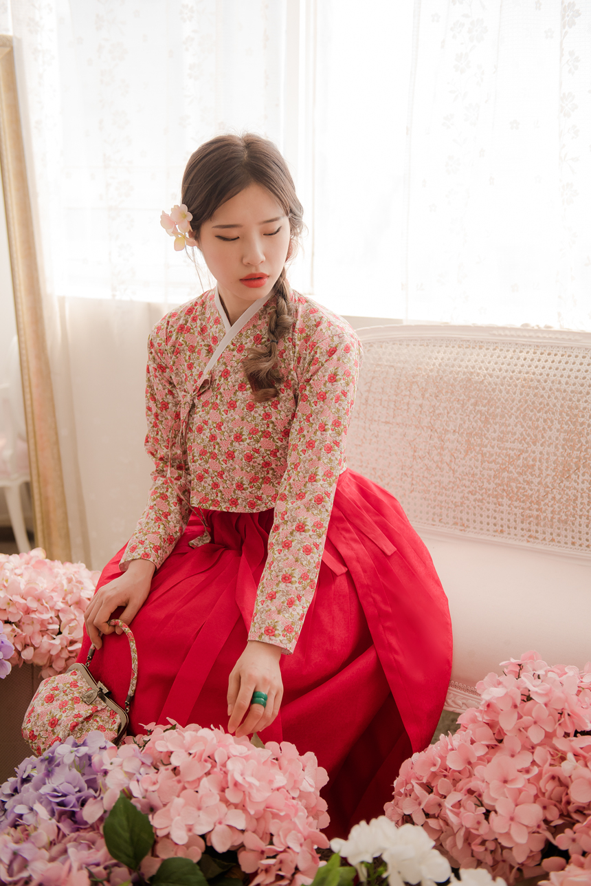 꽃닮 허리치마 수국단 홍색