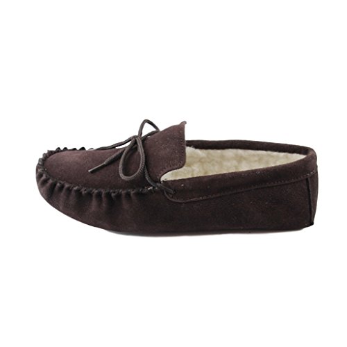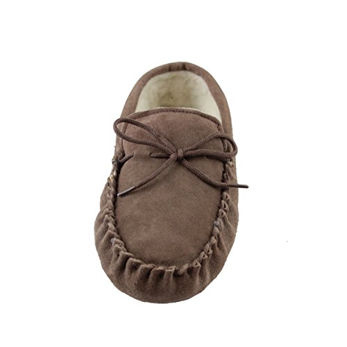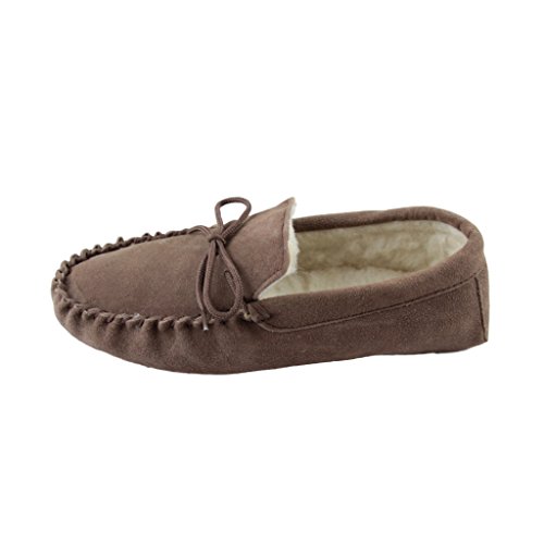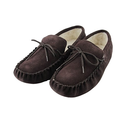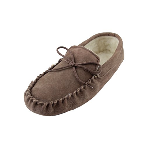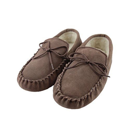 -. Binding : Apparel -. Brand : Sheepskin World -. Department : mens -. Feature : Mens Suede Moccasins with soft Suede sole / Sheepskin Wool Lining from British Sheep / Tan and Chocolate Brown Colours / Snug Woolen Lining will keep your feet warm this season / Soft Sole gives these slippers a more homely feeling and wrap around your feet -. ProductGroup : Shoes -. ProductTypeName : SHOES -. Title : Deluxe Mens Sheepskin Wool Moccasin Slippers with Soft Sole - Suede Upper