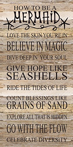 Second Nature By Hand 12 x 24" Natural Reclaimed Mermaid Wood Sign, Medium