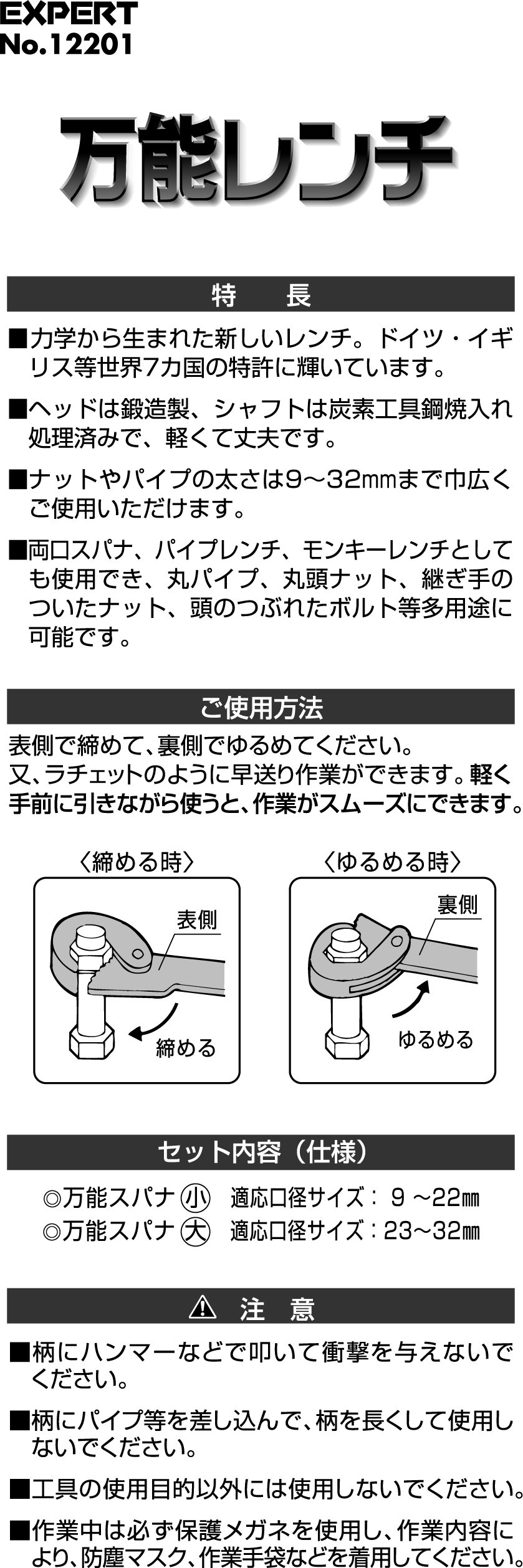 ● Usage: Monkey wrench · double mouth wrench · pipe wrench for any tightening / loosening work