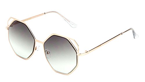 | Geometric Sunglasses Flat Lens Metal Cut-Out Accent Corners Runway Fashion |