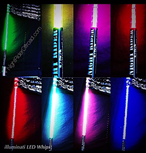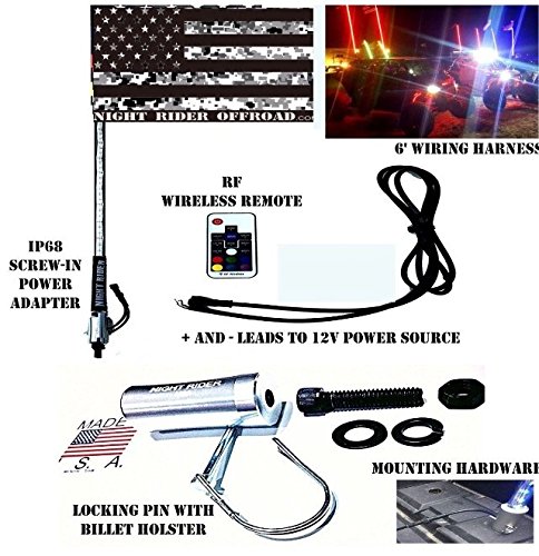 NIGHT RIDER OFFROAD 6illu Illuminati 6' RGB Led Lighted Whip Antenna 22 Modes with Wiring Harness, 20 Colors