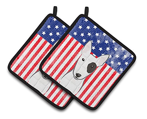 Caroline's Treasures American Flag & Bull Terrier Pair of Pot Holders BB2139PTHD, 7.5HX7.5W, Multicolor