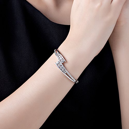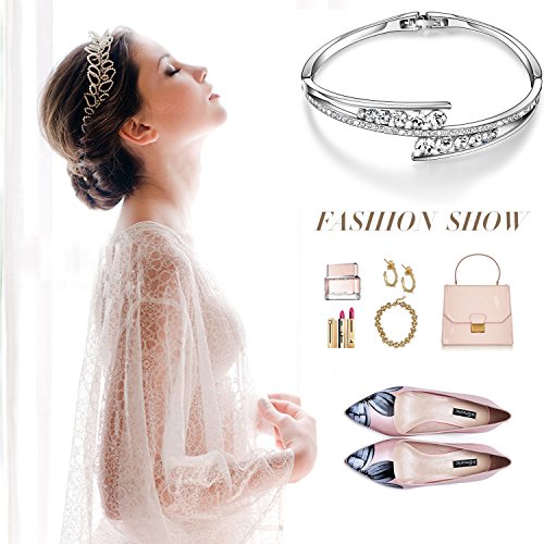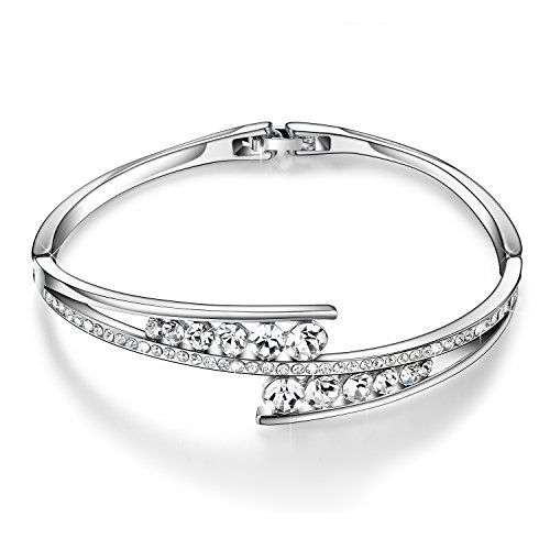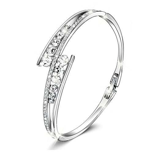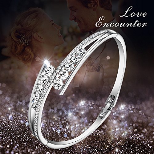 Menton Ezil Mother's Day Gifts Love Encounter Swarovski Crystals Bangle Bracelets White Gold Plated Adjustable Hinged Jewelry