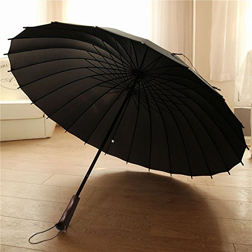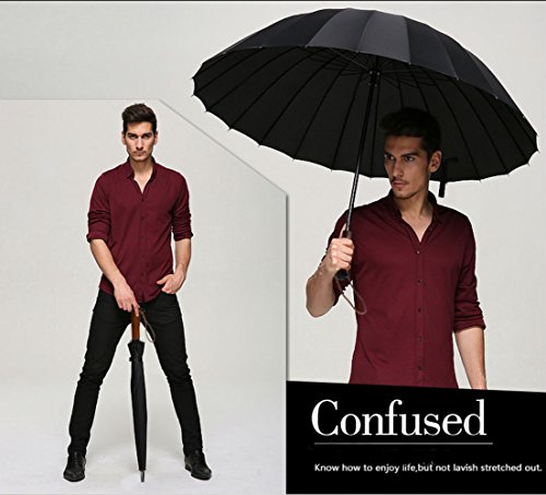 -. Feature : STURDY FRAME CONSTRCTURE: Made of 24 durable fiberglass ribs and aluminum alloy central shaft, making the umbrella strong sturdy and windproof. It won't flip inside out even in strong wind. Durability tested thousands of times to ensure it won't be broken in heavy rain. / RAIN PROOF: MAXZOLA Umbrella fabric is 210T polyester fabric. It's extremely water-resistant. Protecting you against the rain. / SOFT FOAM RUBBER: The straight style handle provides you a very good and comfortable grip. Hang on a chair or hook conveniently with the strong loop handle. / DIMENSION: Measures 38 inches (96cm) long and 47 inches (120cm) in diameter when open. Big enough to share this umbrella with your lover to be close to each other, and keep the rain from hitting you in the face. / BLACK COLOUR: Classy black umbrella is the symbol of nobility and charming, you can carry it on any occasions.