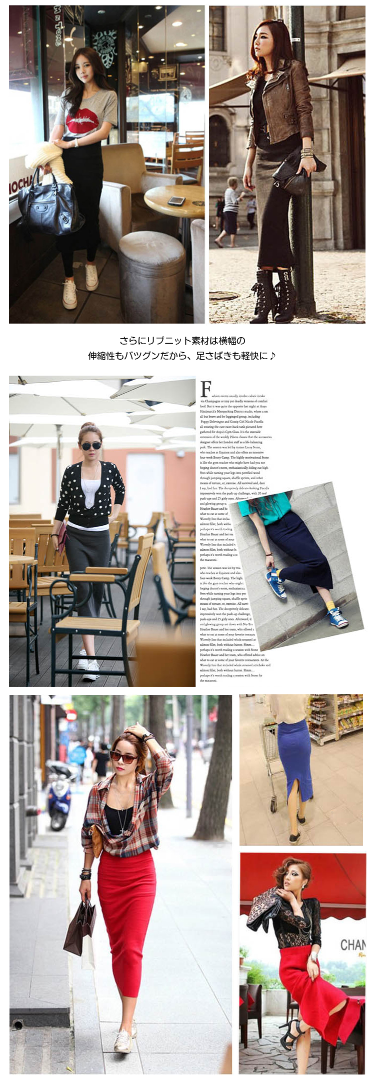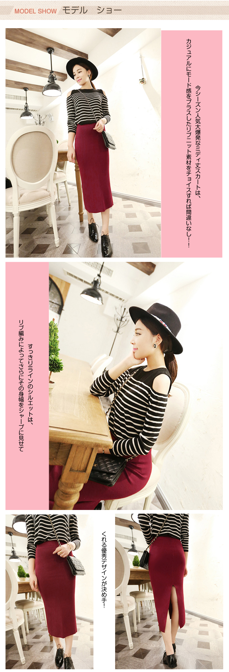 | 今シーズン人気大爆発なミディ丈スカートは、カジュアルにモード感をプラスしたリブニット素材をチョイスすれば間違いなし!!すっきりIラインのシルエットは、リブ編みによってさらにその身幅をシャープに見せてくれる優秀デザインが決め手!さらにリブニット素材は横幅の伸縮性もバツグンだから、足さばきも軽快に?ミドル丈のブーツやショートブーツで足首もチラ見せしつつ、バランスをいったん調整し、やぼったくなりすぎないよう、ボリュームのあるストールやインパクト大のビジューネックレスなどで目線を上にもってくれば簡単にオシャレを気取れます☆ | |