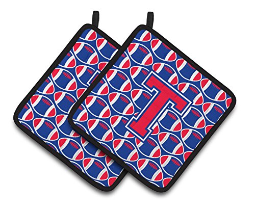 Caroline's Treasures Letter T Football Harvard Crimson & Yale Blue Pair of Pot Holders CJ1076-TPTHD, 7.5HX7.5W, Multicolor