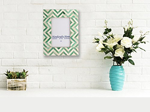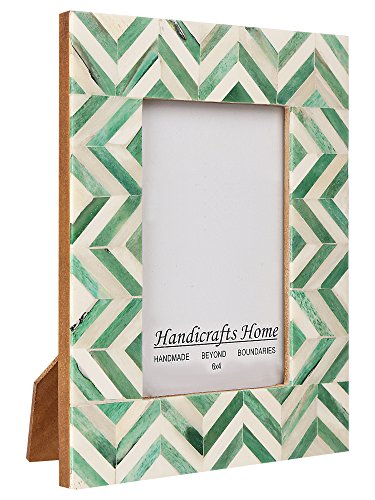 Picture Frames Photo Frame Chevron Herringbone Vintage Wooden Handmade Naturals Bone Classic Size 4x4 Inch (Green)
