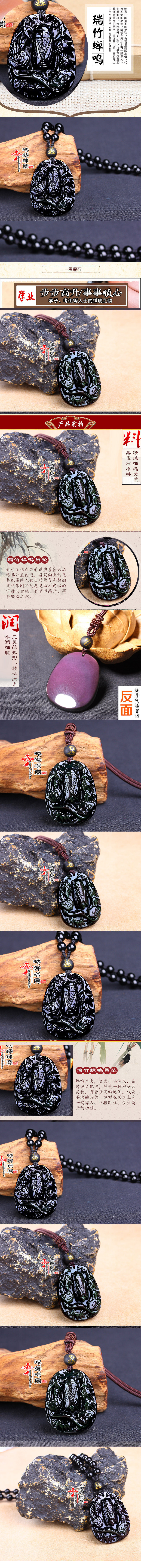 开光瑞竹蝉鸣黑曜石吊坠 旺学业考运文昌吉祥物