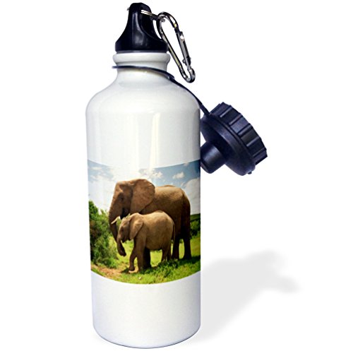 3dRose Mama N Baby Elephants in Wild Sports Water Bottle, 21 oz, White
