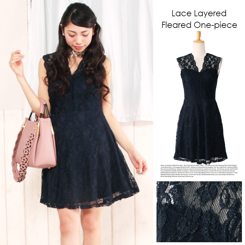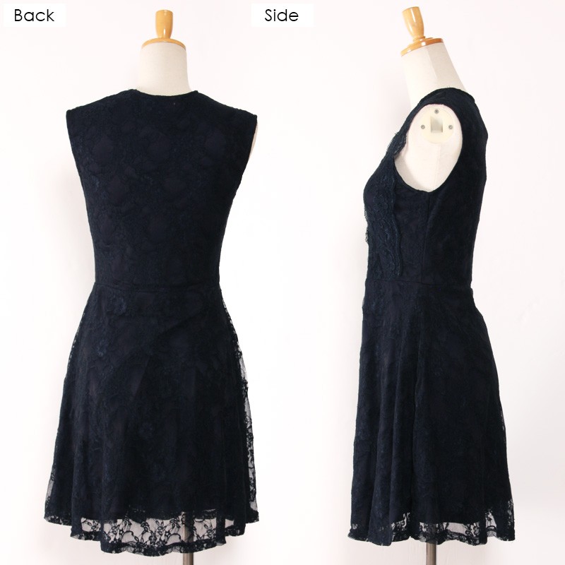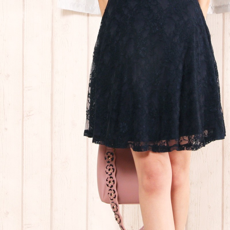高めのウエストマークからふんわりと広がるシルエットがとってもcuteに仕上がってます全体的に落ち着いた雰囲気を与えつつ、胸元は程よく開いていて大人の女性を演出総レースなのでとっても華やかですので、アクセサリーはシンプルなのがおススメです。結婚式やパーティーもちろん、お呼ばれなど様々なシーンで活躍間違えなしのitemです!!Mサイズモデル身長:162cm
