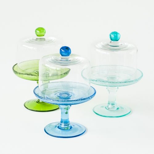 Product DescriptionVintage Domed Glass Stand comes in three different colors to choose from: blue, green, or turquoise. 6.75"0
