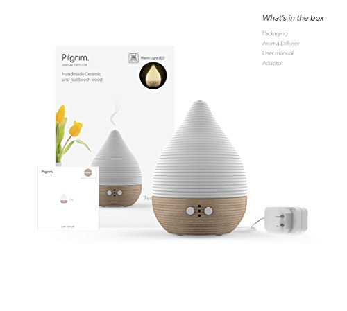 - Title : Pilgrim Collection Teo Aroma Diffuser, Essential Oil Aromatherapy, Humidifier - Handmade Ceramic, FSC Certified Beech Wood, Belgian Design, Timer, LED Light, Extra Long Cord, Silent Fan