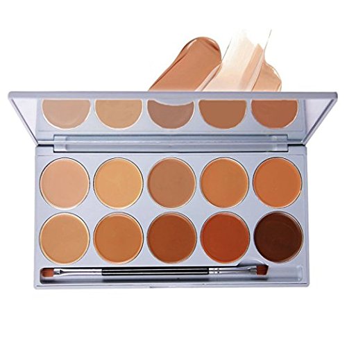 10 Colors Cream Concealer More Functions: Total 10 colors are useful for any skin tone. Perfect for skin problems. Such as Dark Spots, Blemishes, Wrinkles, Scars and Clack Circles.