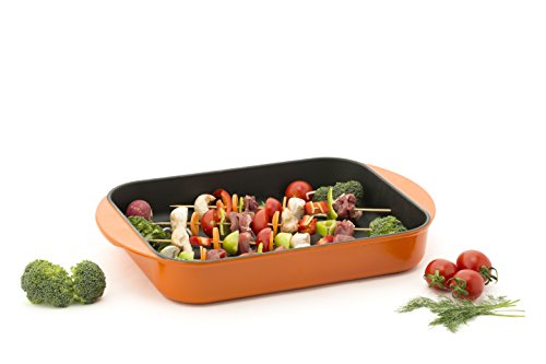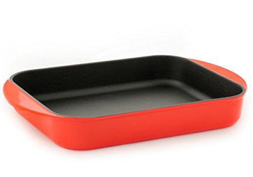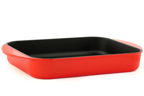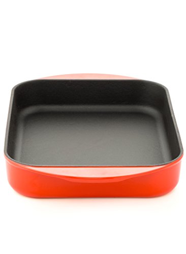 Best quality enamel coated cast iron baking dish with excellent heat retention and food release properties that can’t be matched with pyrex or silicone baking dishes.