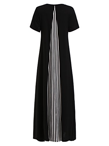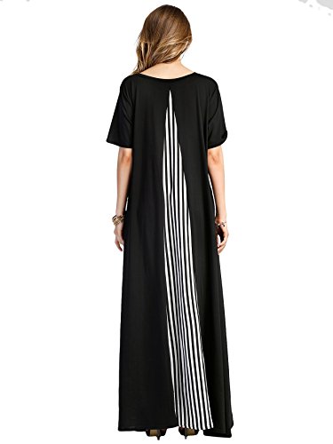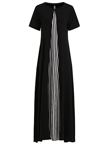 Short sleeve, pockets, striped, scoop neck, maxi dress design.