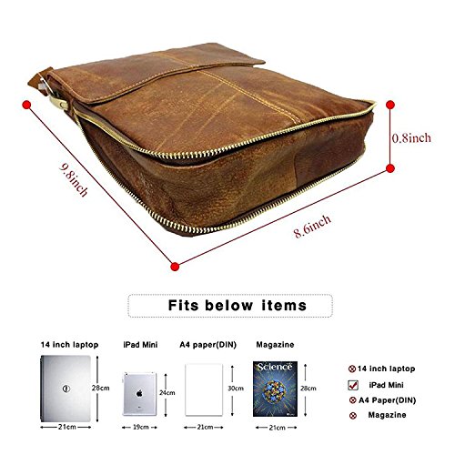 -. Feature : 8.6" l x0.8" w x9.8" h;free gift PU leather pencil case, get promotion code below / Mens crossbody bag includes cell phone pocket, interior zipper pocket,front pocket and back zipper pocket. We can put coins and bus card in the front pocket.l / crossbody bag is made of top quality leather with advanced technology with adjustbale shoulder straps;unisex crazy horse shoulder bag;The durable design of the removable strap is easy to convert to a crossbody or shoulder handbag at your convenience. / This small messenger bag comes with a smart and fresh design, smooth leather and fits all sizes. / Character: Flexible, multifunctional, convenient, durable,used in different occations, business, school, travel,street, the best choice for hiking, cycling, shopping and so on